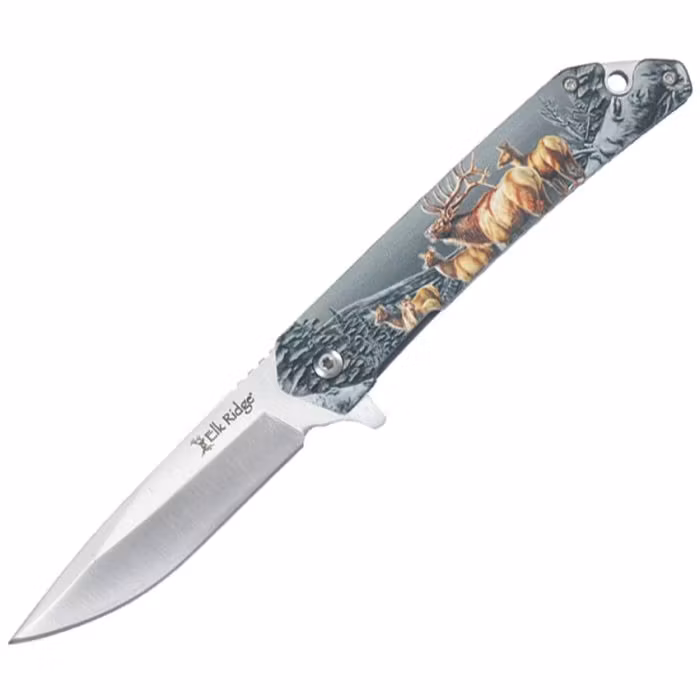 Bladet är tillverkat i rostfritt stål och fälls enkelt in i det ergonomiska handtaget som är dekorerat med detaljerat djurmotiv, vilket ger varje kniv en personlig och naturlig känsla. Oavsett om du använder den till jakt, fiske, camping eller bara vill ha en pålitlig kniv i fickan – är det här ett val du inte kommer ångra.