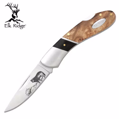 Denna unika fällkniv kombinerar funktion och hantverk i en stilren design. Skaftet är tillverkat i vackert ädelträ som ger ett varmt och naturligt grepp, samtidigt som det bidrar till knivens exklusiva känsla. Bladet i rostfritt stål pryds av ett detaljrikt motiv – en kraftfull varg – graverat med precision för att ge kniven en personlig och vild karaktär. Perfekt som samlarkniv, present eller ett pålitligt verktyg för friluftsliv.