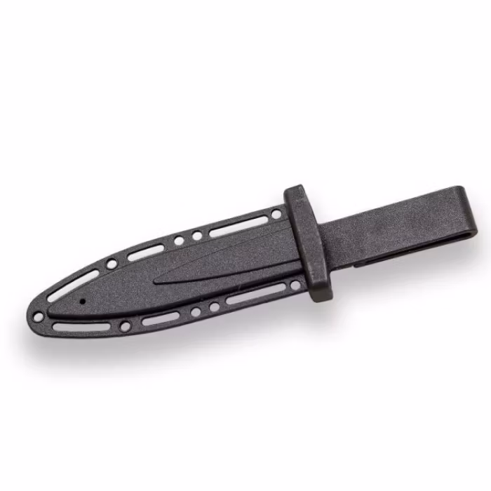 Handtaget är ergonomiskt utformat med texturerad yta för säkert grepp även med handskar eller i våta förhållanden. Den låga vikten i kombination med optimal balans gör kniven lätt att manövrera, vilket är avgörande i kritiska situationer. Levereras med ett slitstarkt säker knivslida för säker förvaring och transport.