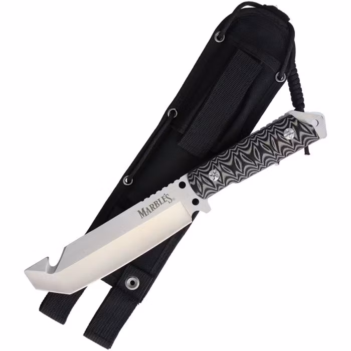Slitstark bowiekniv med tantoblad och G-10 handtag.
