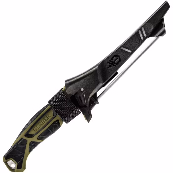 Det ergonomiska handtaget med Gerbers HydroTread Grip™-teknik ger överlägset grepp, även när händerna är våta eller slemmiga. Den smart utformade slidan i plast har både bältesclip och inbyggd brynsten, så att du alltid har ett vasst blad redo – oavsett var fisketuren tar dig.