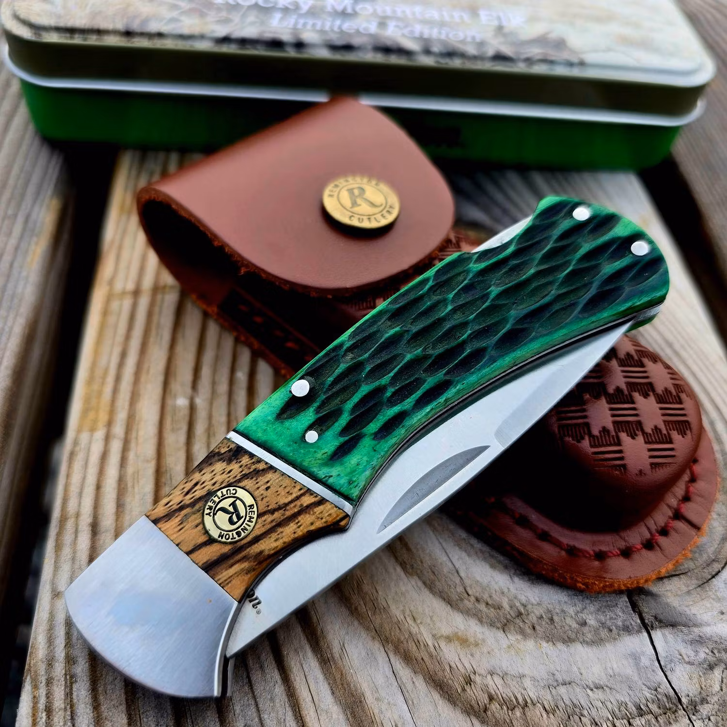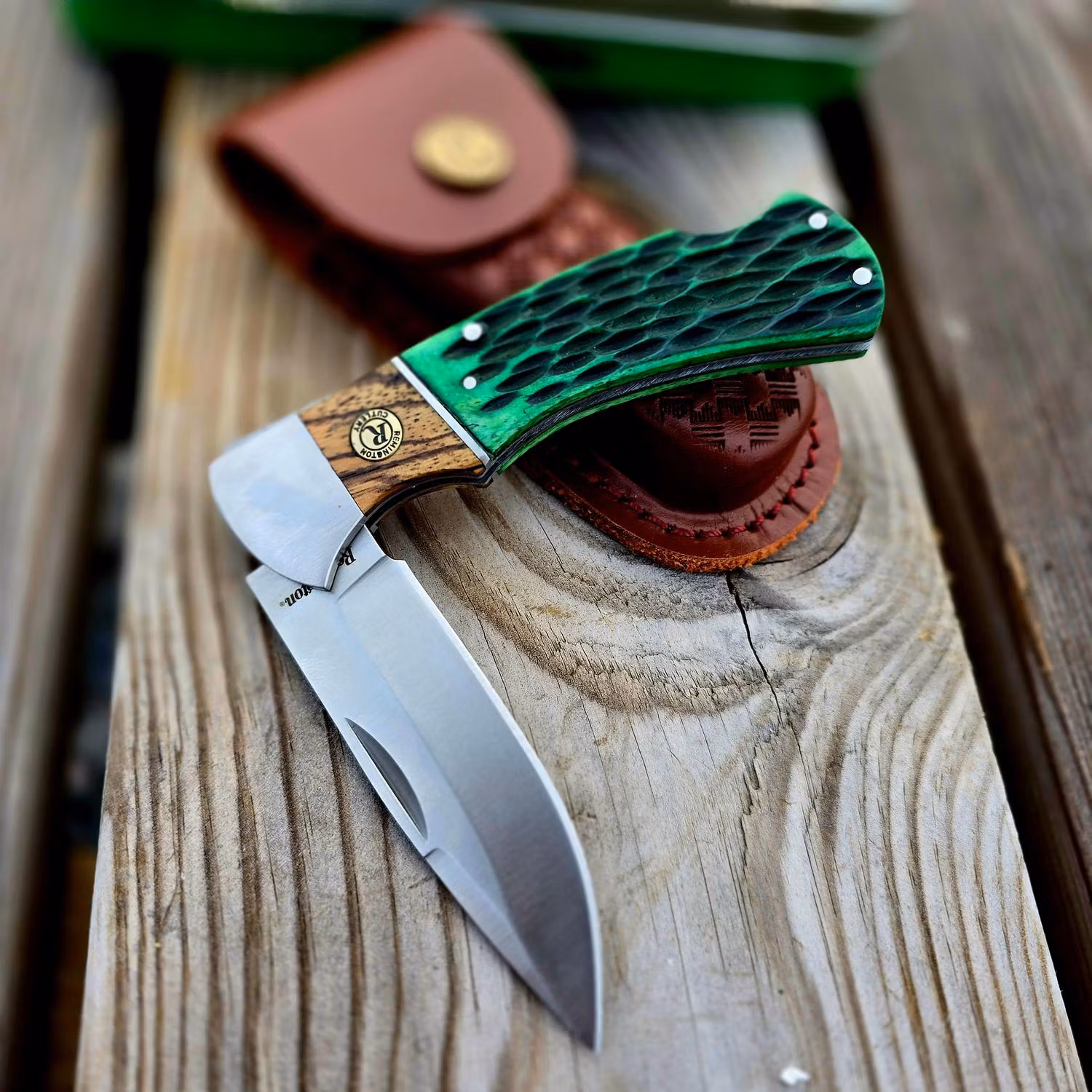 En fickkniv från Remington med en tillhörande läderväska är en elegant och funktionell present eller tillägg till en jagares eller friluftsentusiasts utrustning