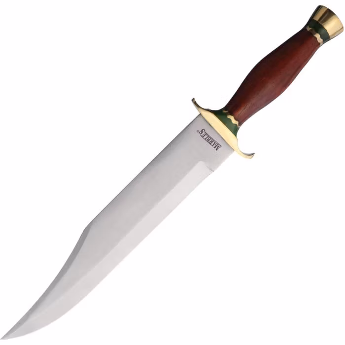 Denna imponerande Bowie-kniv kombinerar klassisk design med modern skärpteknik. Den stora, imponerande bladet är slipat för att erbjuda oöverträffad skärpa och är perfekt för det råa kravet i naturen. Med dess traditionella trähandtag får användaren inte bara ett förnämt utseende men även ett fast och säkert grepp. Exceptionell balans och tyngd gör denna kniv till ett enastående verktyg för de mest krävande uppgifterna utomhus. En äkta symbol för överlevnad och hantverksskicklighet."