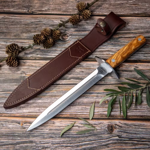 Cudeman Dolken är det perfekta verktyget för rehalerjägaren. Det är en solid dolk som ofta används, särskilt i Frankrike, för jakt på storvilt. Det faktum att den är solid är ett plus som jägaren letar efter, eftersom den inte försvagar dess struktur som en tangdolk. Dess 24 centimeters blad ger jägaren trygghet på avstånd, tillsammans med dess tvärhuvud i 420 stål för att undvika olyckor under användning. Det polerade hjorthandtaget och dess förstklassiga bruna läderslida gör en idealisk uppsättning även för samlaren