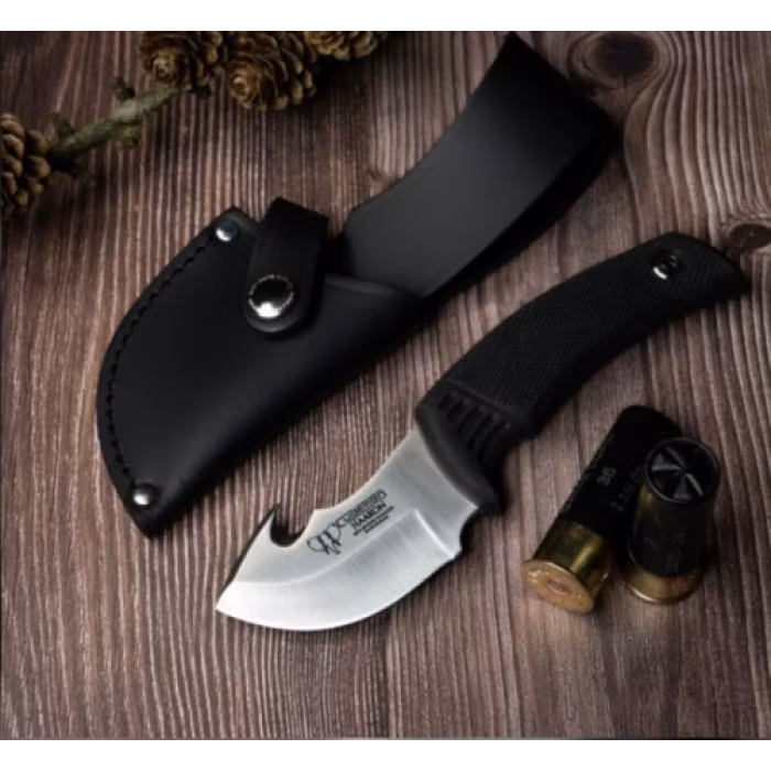 Både en traditionell jaktkniv och en kniv med buk öppnare och ett blad utformat för att enkelt kunna flå bytet vid slakt.