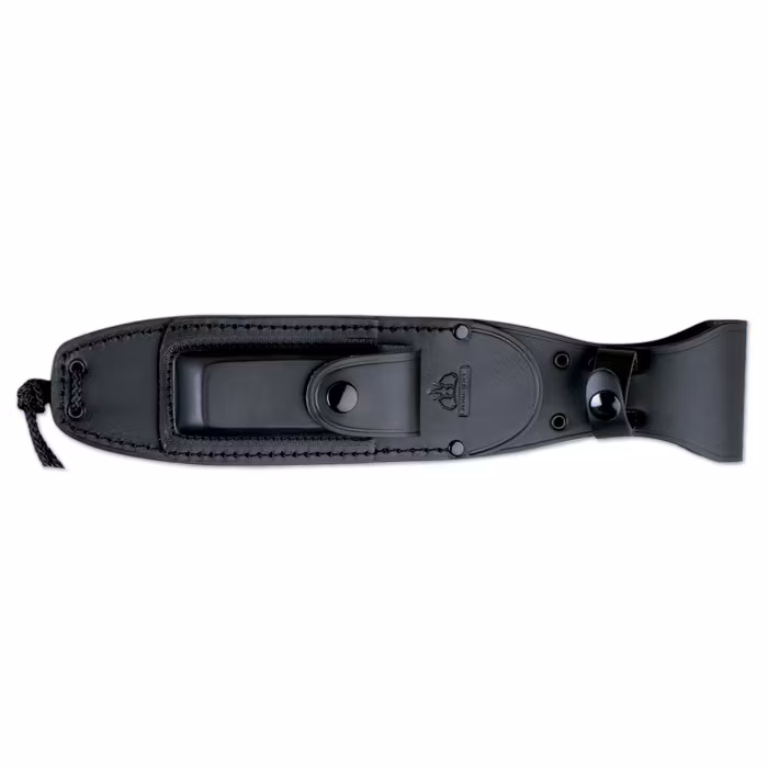 MOLYBDENUM VANADIUM HARDNESS: 54/56 HRc TANG TYPE: FULL-TANG ATTACH OF THE HANDLE: ALLEN STAINLESS STEEL SCREWS HANDLE MATERIAL: BLACK MICARTA WITH RED LINERS SHEATH: BLACK LEATHER (INCLUDED) BOX: INCLUDED BOX WEIGHT: 106 gr KNIFE WEIGHT: 384 gr SHEATH WEIGHT: 275 gr OVERALL WEIGHT: 759 gr