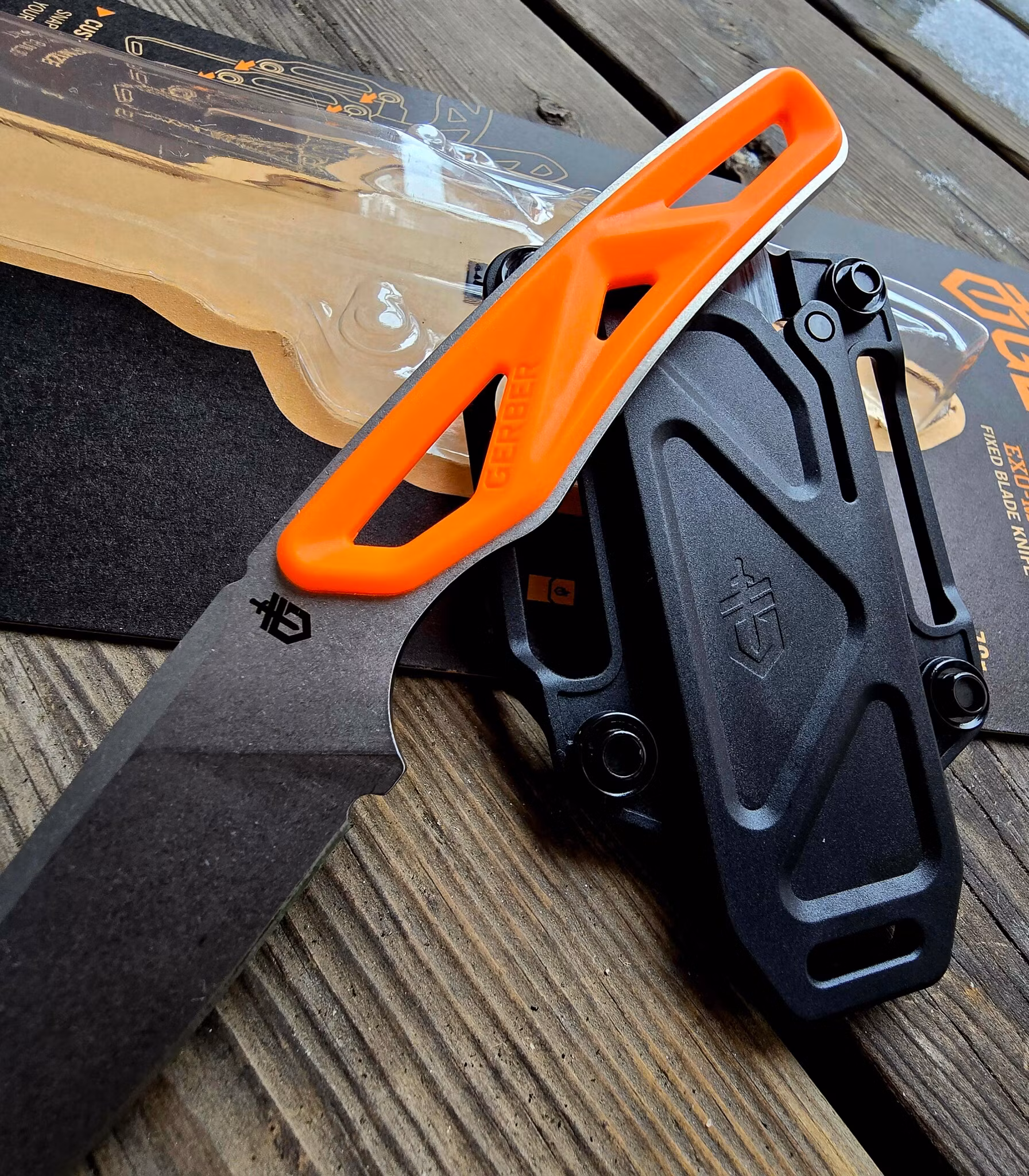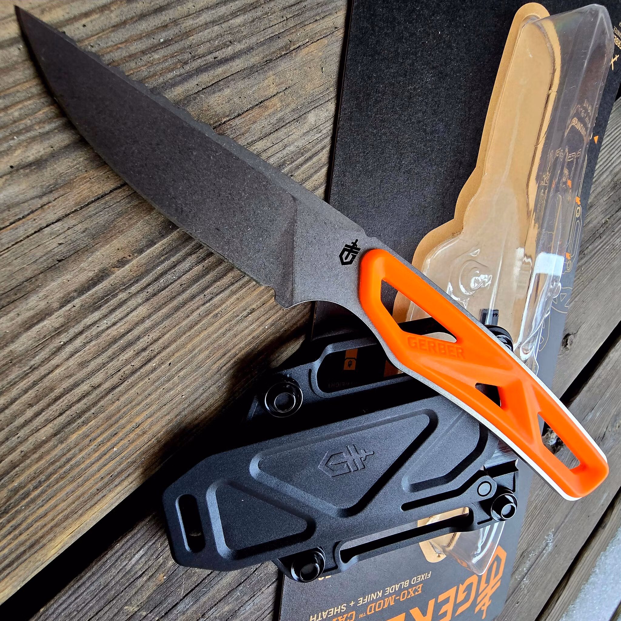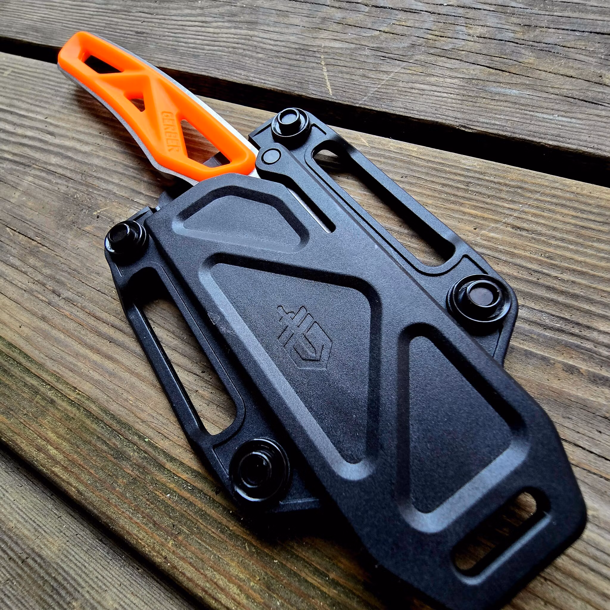 Den klara orange färgen är inte bara snygg – den gör kniven lätt att hitta i skog och mark. Med det modulära hölstret, som kan kombineras med andra knivar i Gerbers Exo-Mod-system, är detta ett otroligt praktiskt verktyg att bära med sig på jakt, i ryggsäcken eller på bältet.