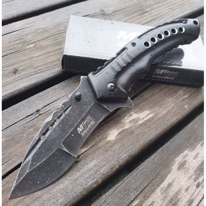 Fällkniv M-Tech MTA866BKProdukt infoStorlek 21 cmKnivens bladlängd 8 cmLockbackenhandsöppningAssisterande öppningHål för fångstlinnaFörlängd tangKniven är vass